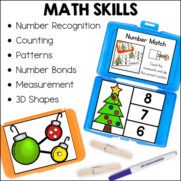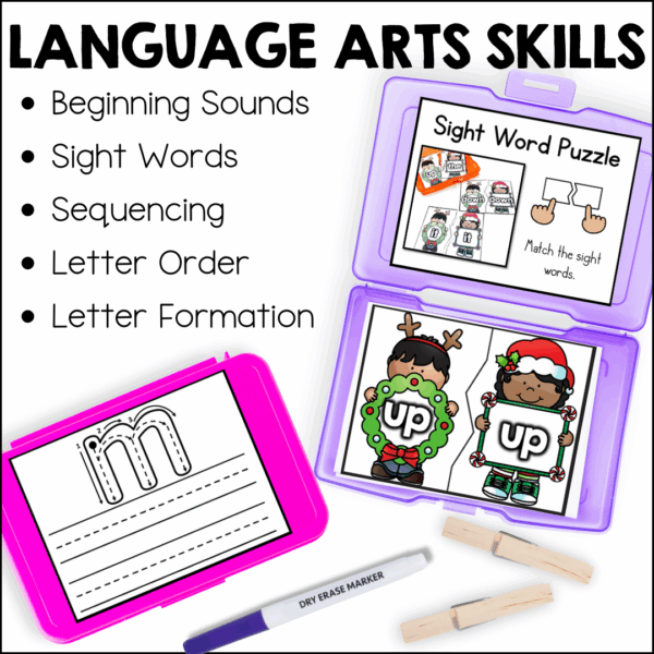 These task cards provide an excellent way to reinforce key pre-kindergarten skills while keeping students engaged throughout December. The math activities cover a variety of important topics such as number recognition, addition, pattern recognition, and 3D shapes, helping students build a strong foundation for future math concepts. The literacy activities focus on phonemic awareness, letter recognition, and classification, supporting early literacy skills essential for reading success.